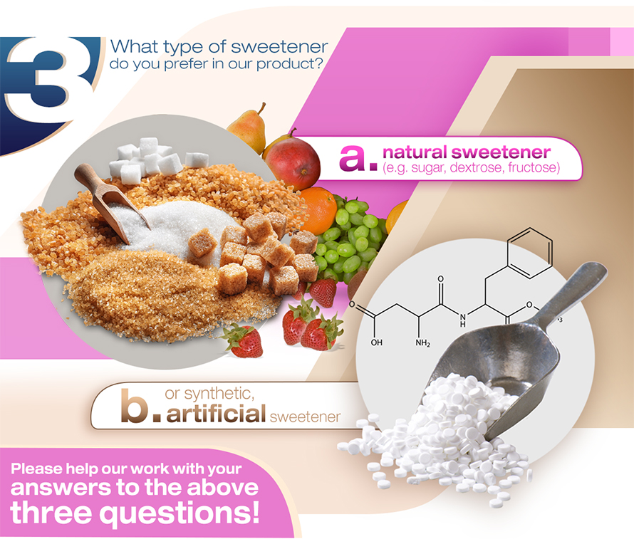 Everybody knows a lot of different flavors. My favorite is our new, cocoa flavored granules. But your opinion is also very important to us, so now we are wondering which of the mentioned flavors is your personal favorite! Put your mark on three of them and send back to us! It may return in our upcoming product!