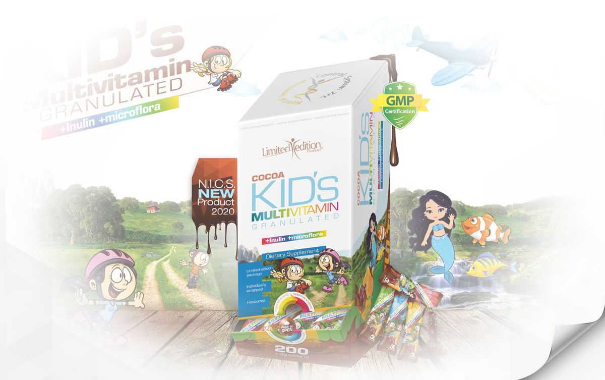 Let me introduce you our latest Medium-term development, Limited Edition Product Cocoa Kid's Multivitamin granules dissolving in the mouth. This is an exciting attempt in the life of our company, as this product will be available only in a certain period of the year only to test it...